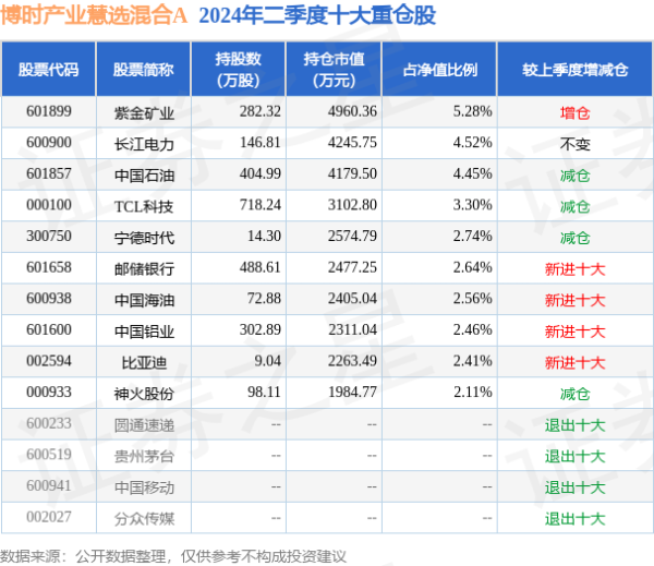 None博时产业慧选搀杂A为搀杂型-偏股基金,凭证最新一期基金季报清楚,该基金钞票建树:股票占净值比77.63%,无债券类钞票,现款占净值比8.45%。基金十大重仓股如下: